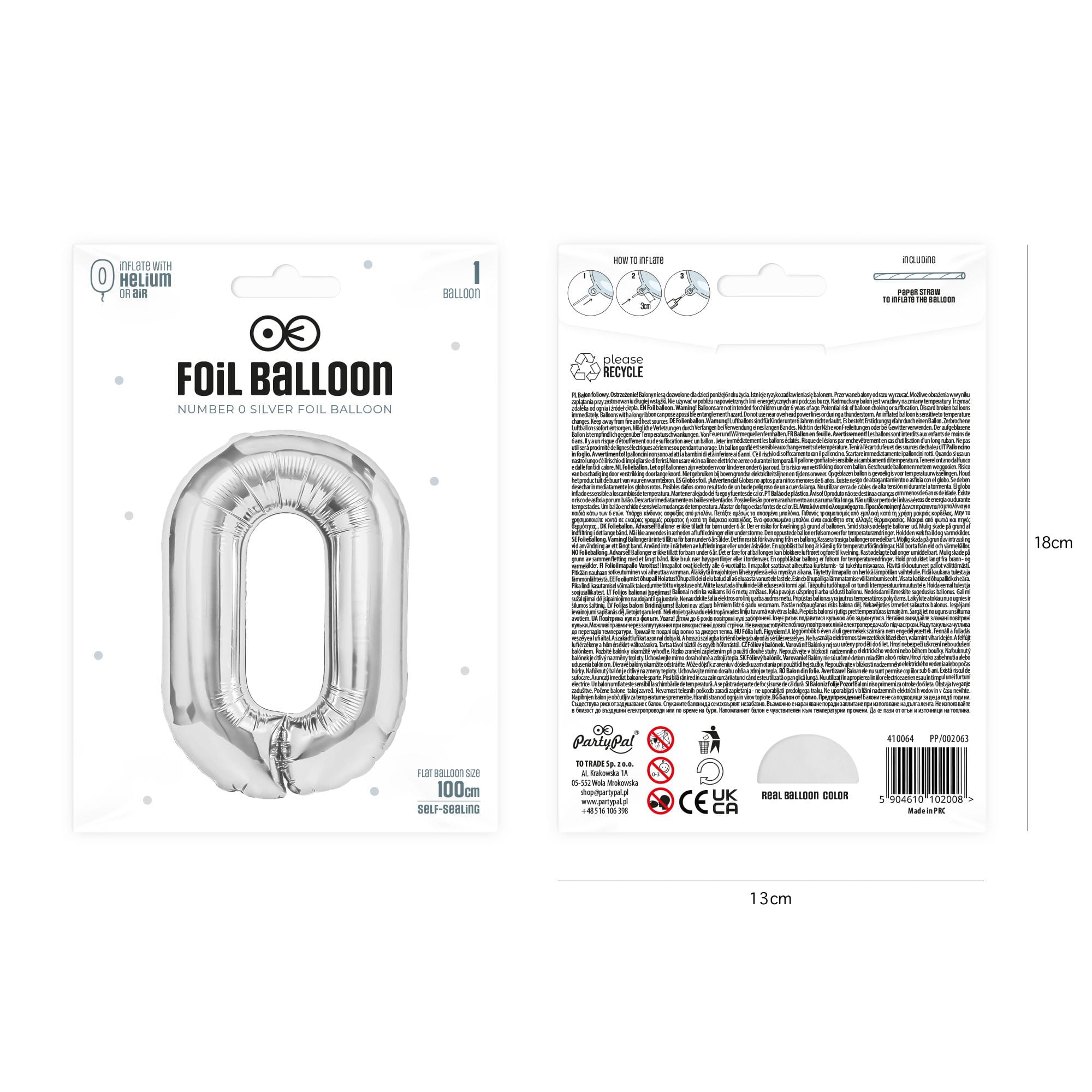 Balon foliowy cyfra 0 srebrny 85 cm