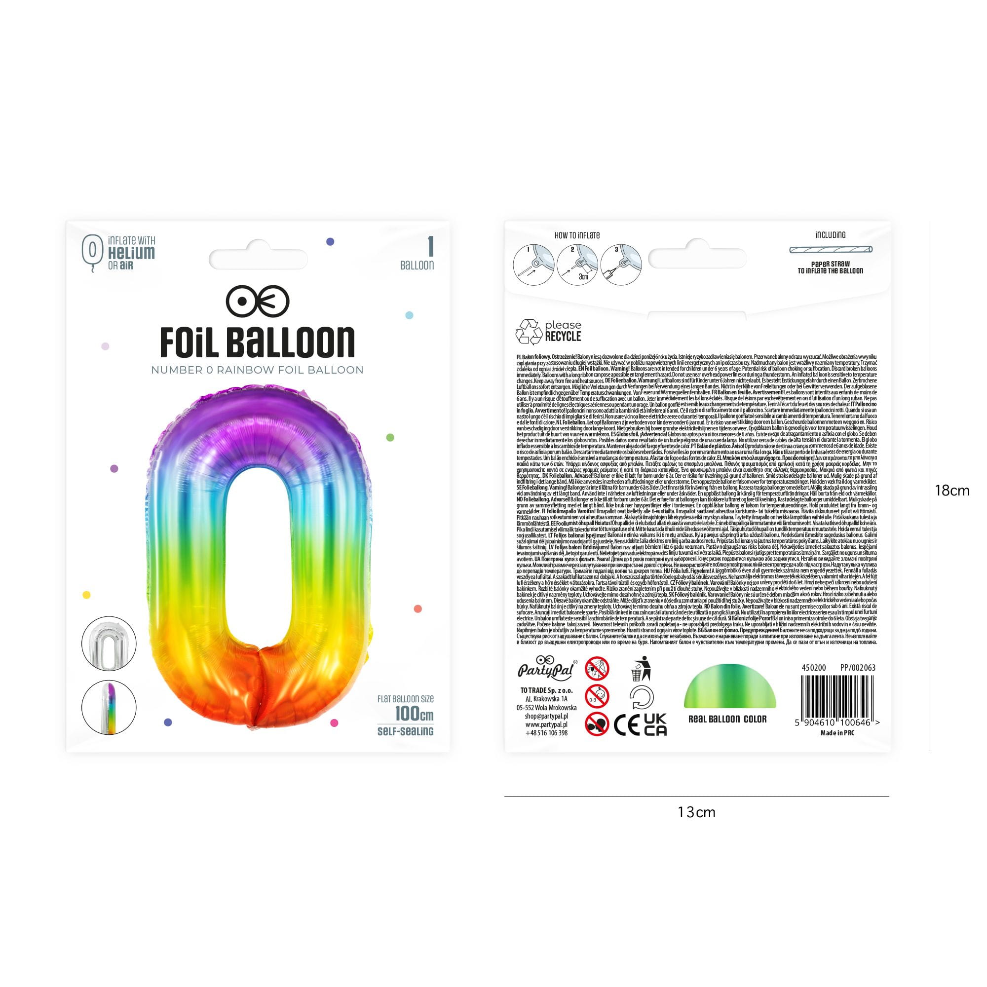Balon foliowy cyfra 0 tęczowy 85 cm