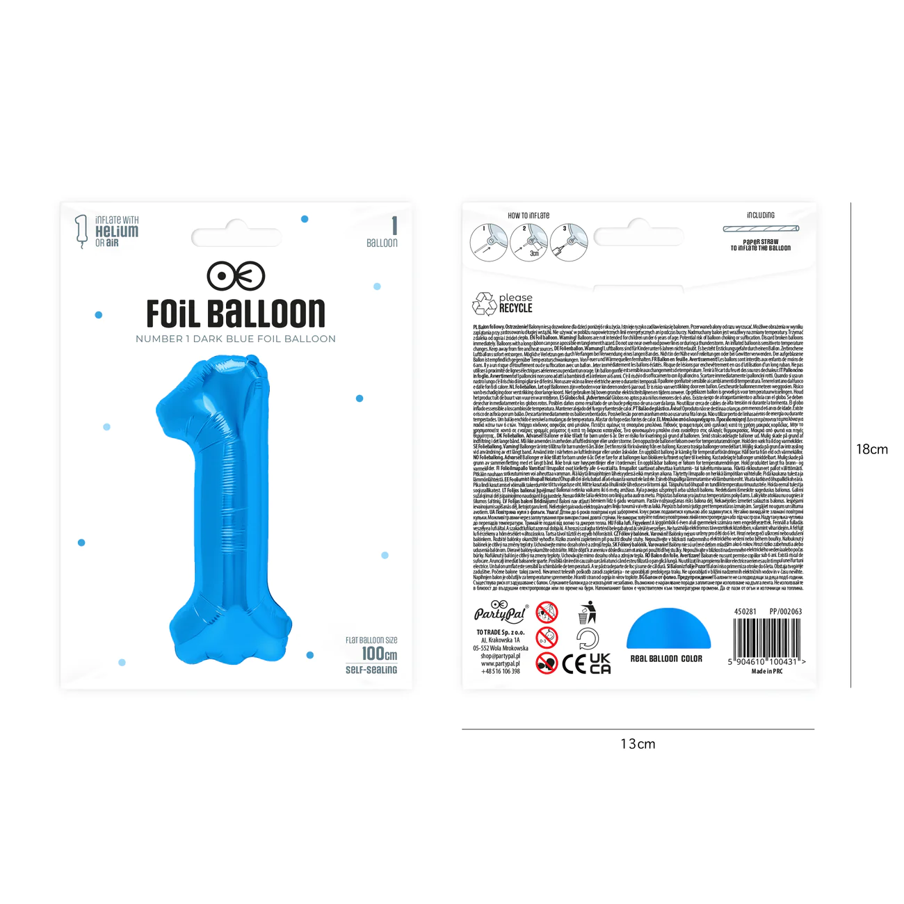 Balon foliowy cyfra 1 ciemnoniebieski 85 cm