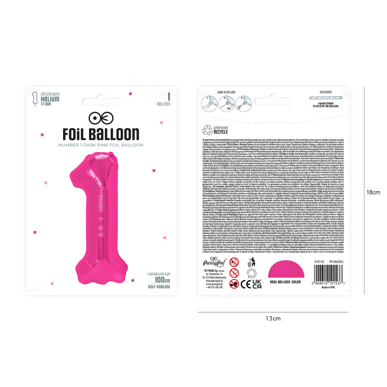 Balon foliowy cyfra 1 ciemnoróżowy 85 cm