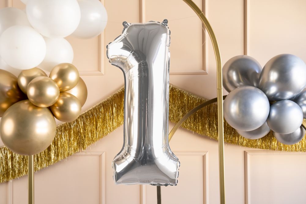 Balon foliowy cyfra 1 srebrny 70 cm