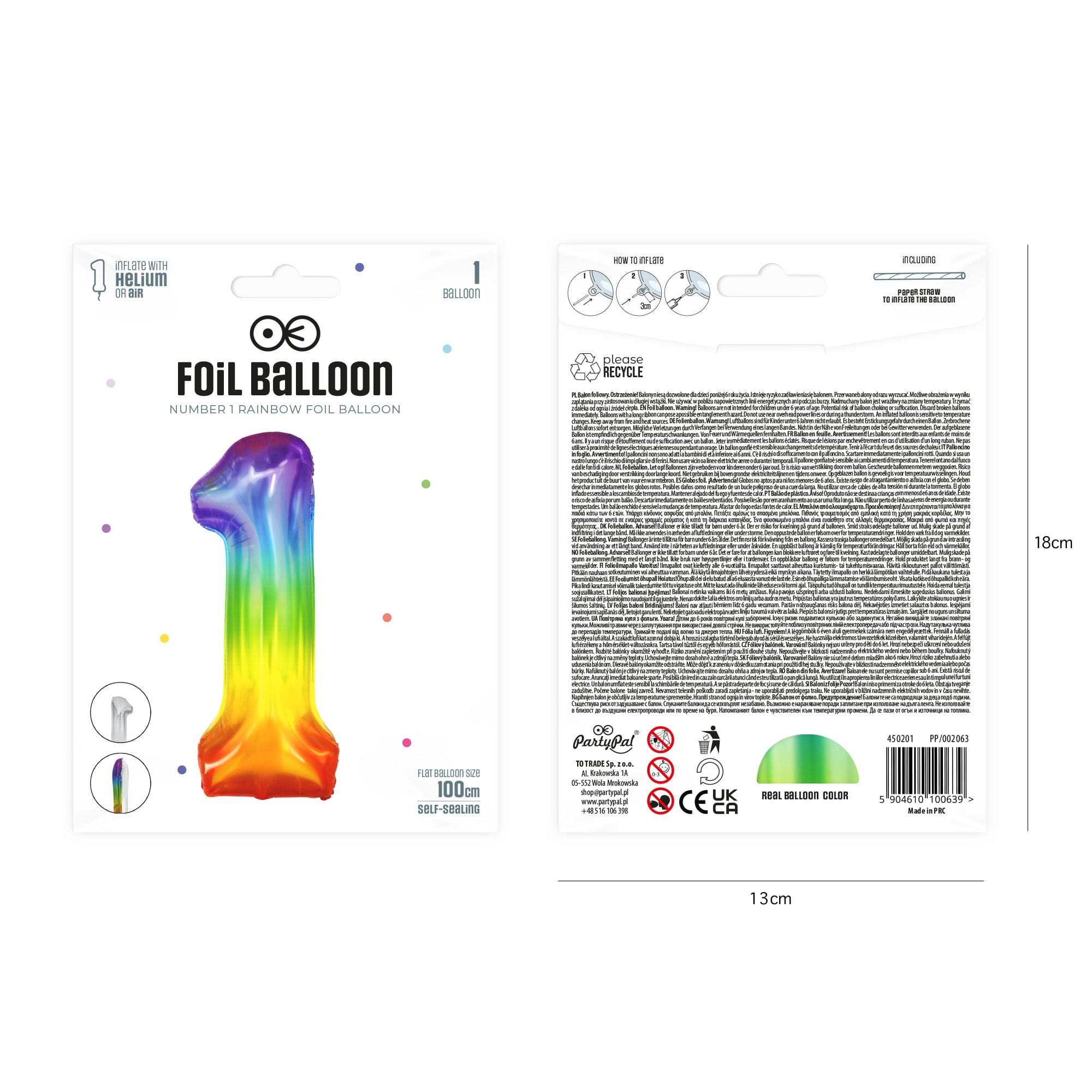 Balon foliowy cyfra 1 tęczowy 85 cm
