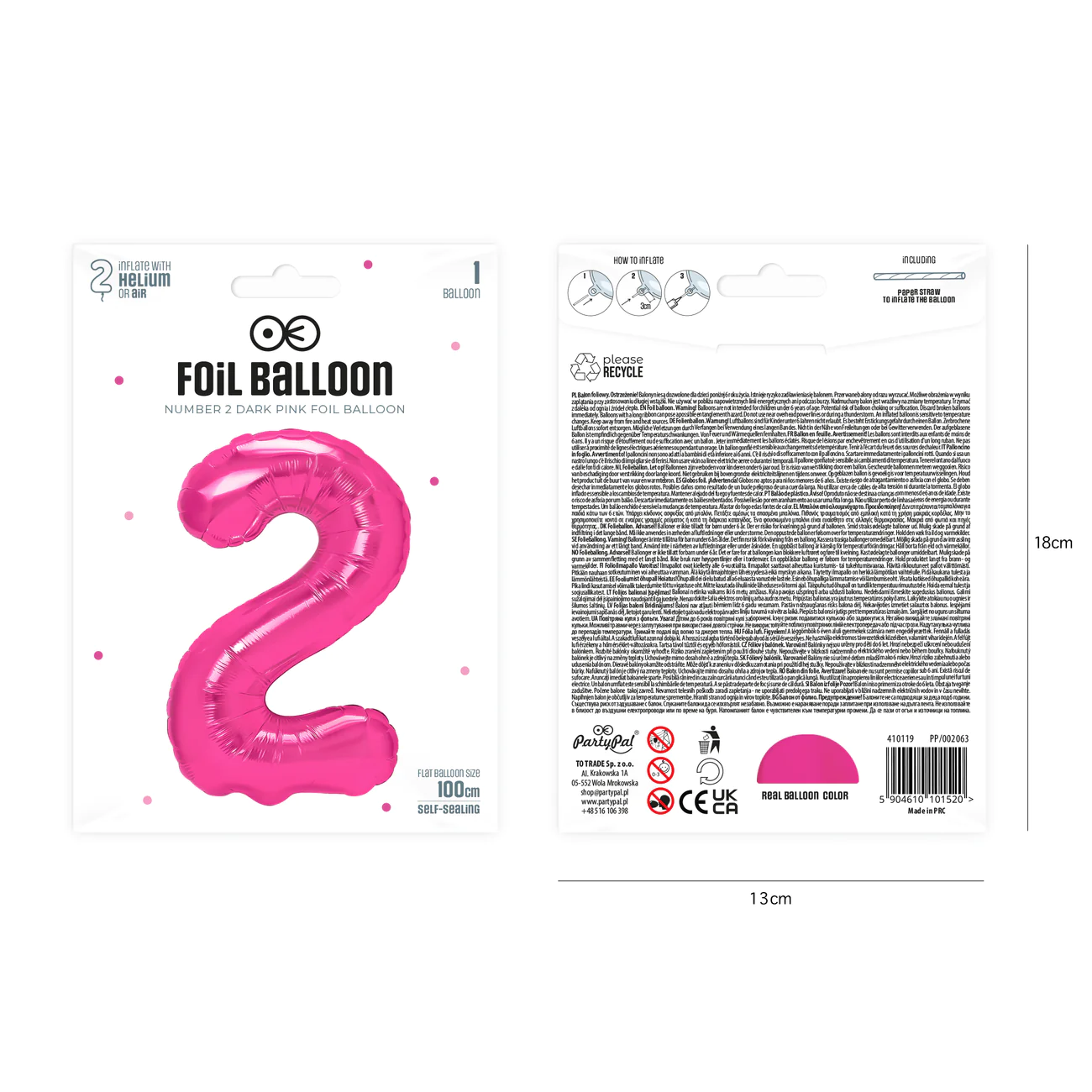 Balon foliowy cyfra 2 ciemnoróżowy 85 cm