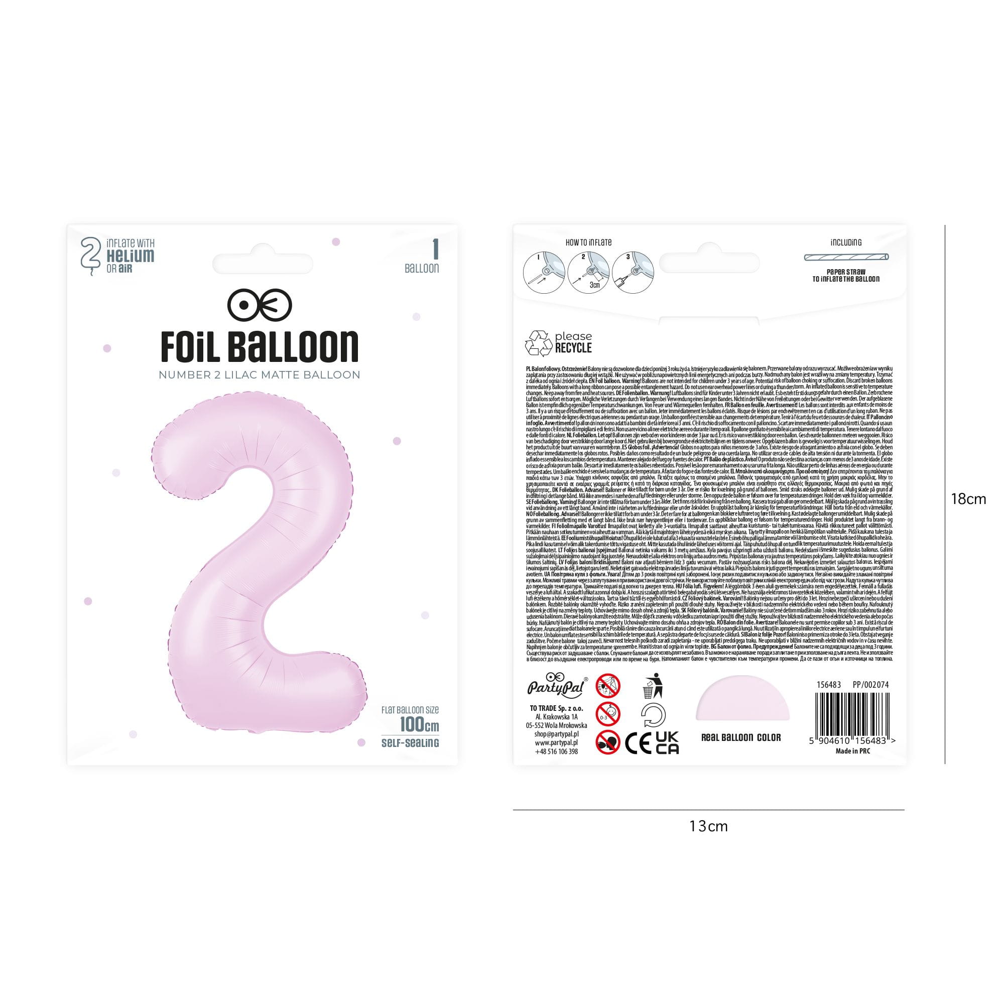 Balon foliowy cyfra 2 liliowy matowy 85 cm