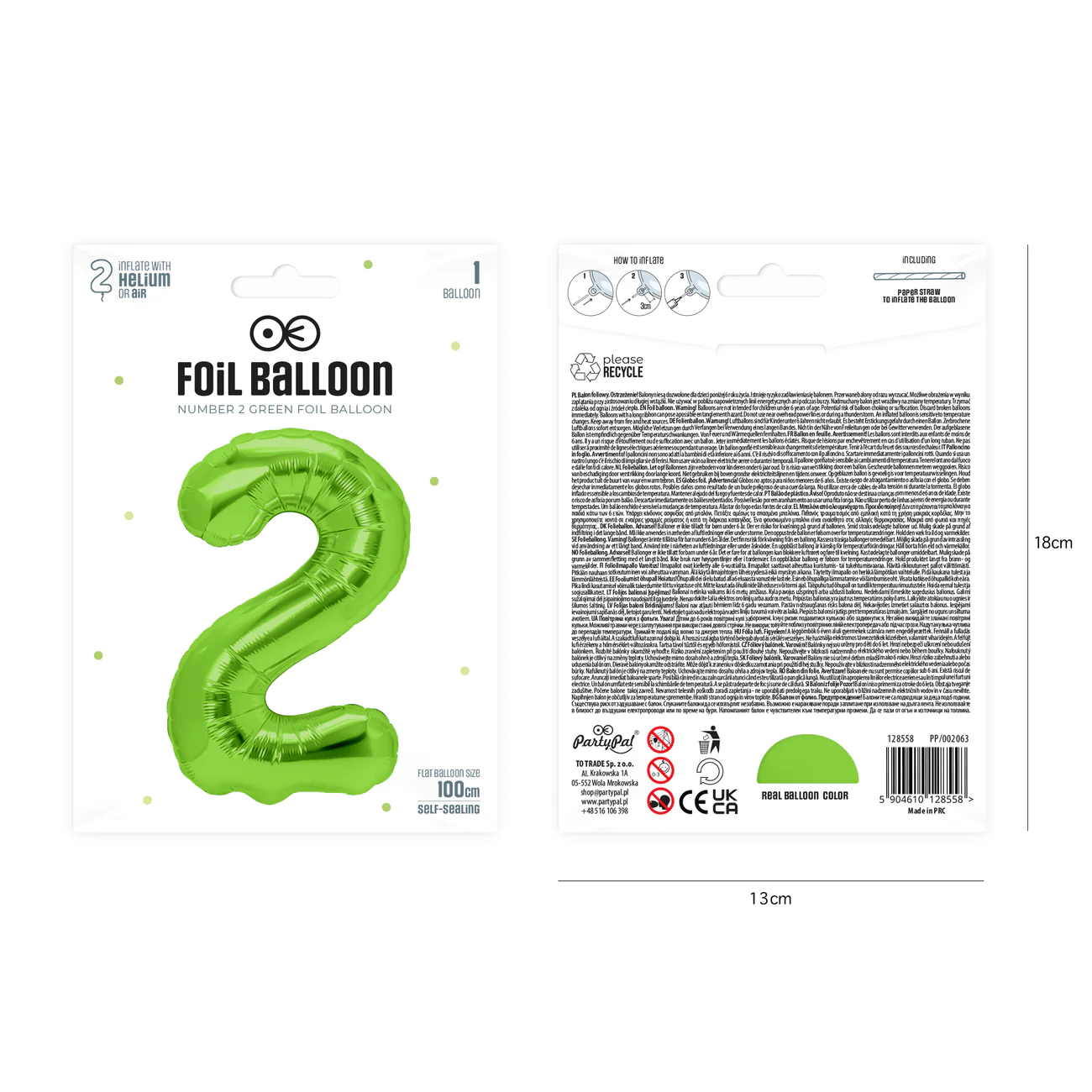Balon foliowy cyfra 2 zielony 85 cm