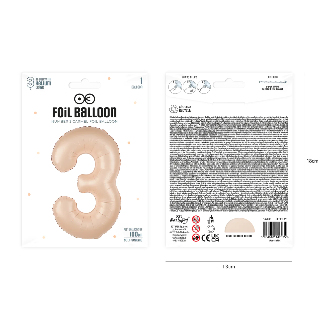 Balon foliowy cyfra 3 kremowy karmelowy 85 cm
