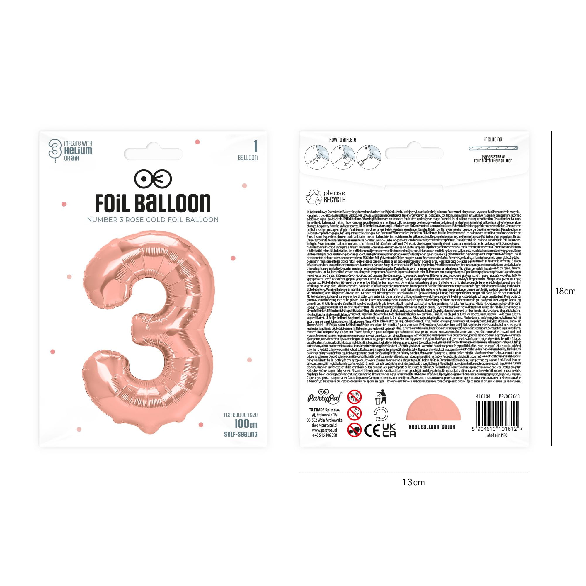 Balon foliowy cyfra 3 rose gold 85 cm