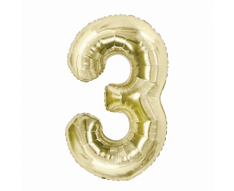 Balon foliowy cyfra 3 szampańska 85 cm
