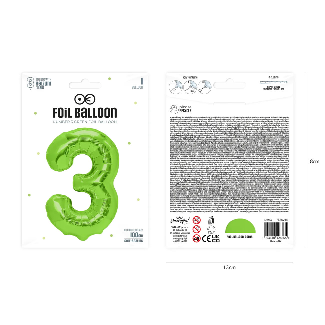 Balon foliowy cyfra 3 zielony 85 cm