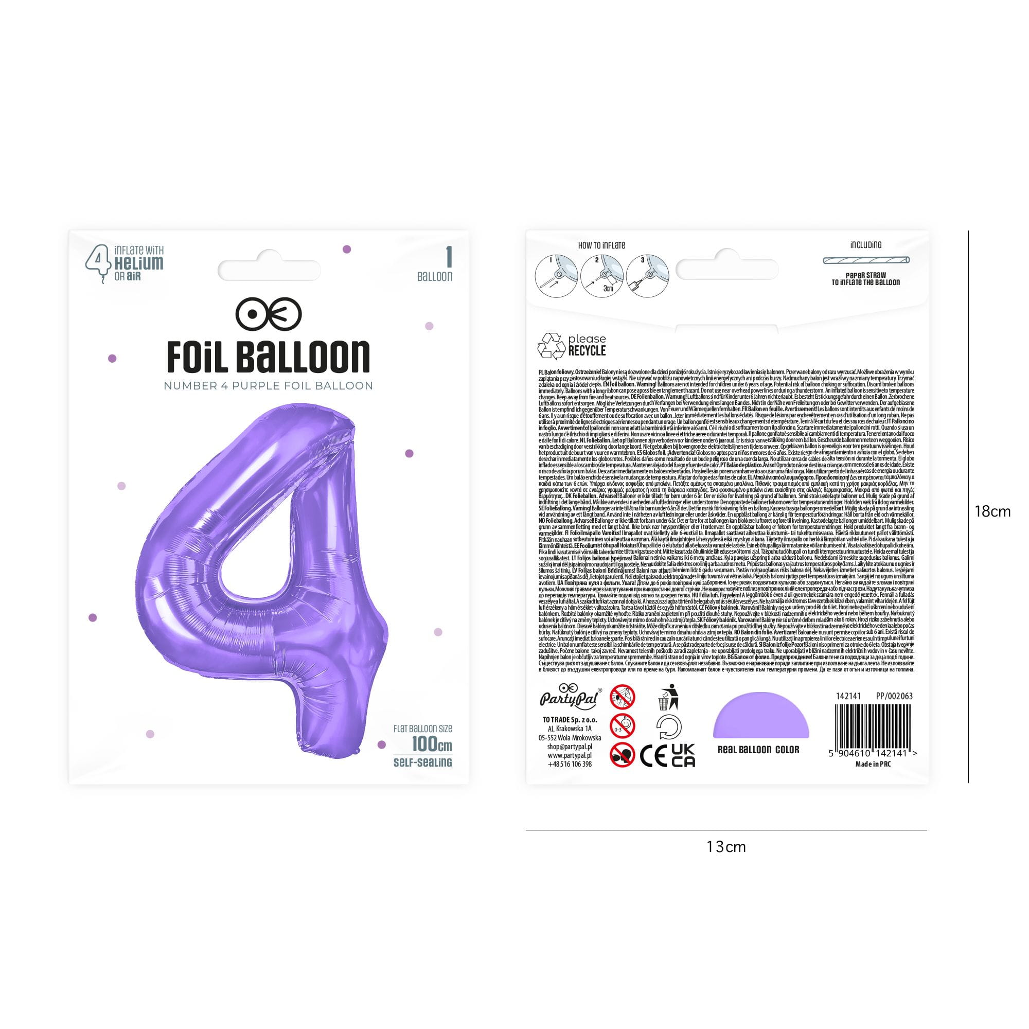 Balon foliowy cyfra 4 fioletowy 85 cm
