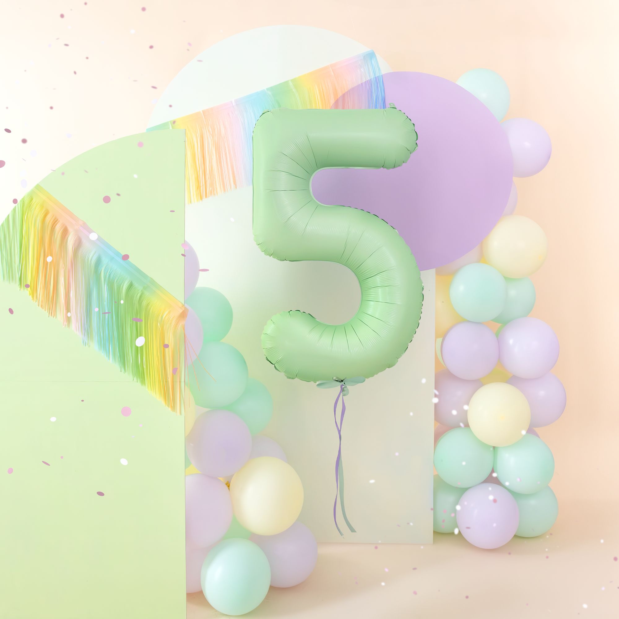 Balon foliowy cyfra 5 pistacjowy matowy 85 cm