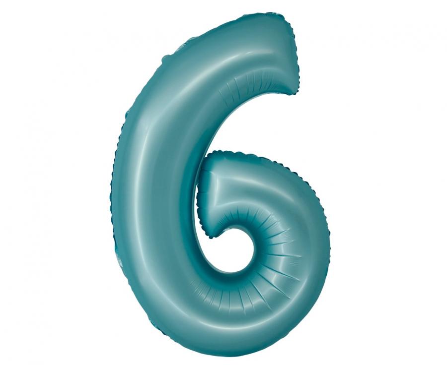 Balon foliowy cyfra 6 jasne niebieska matowa 76 cm