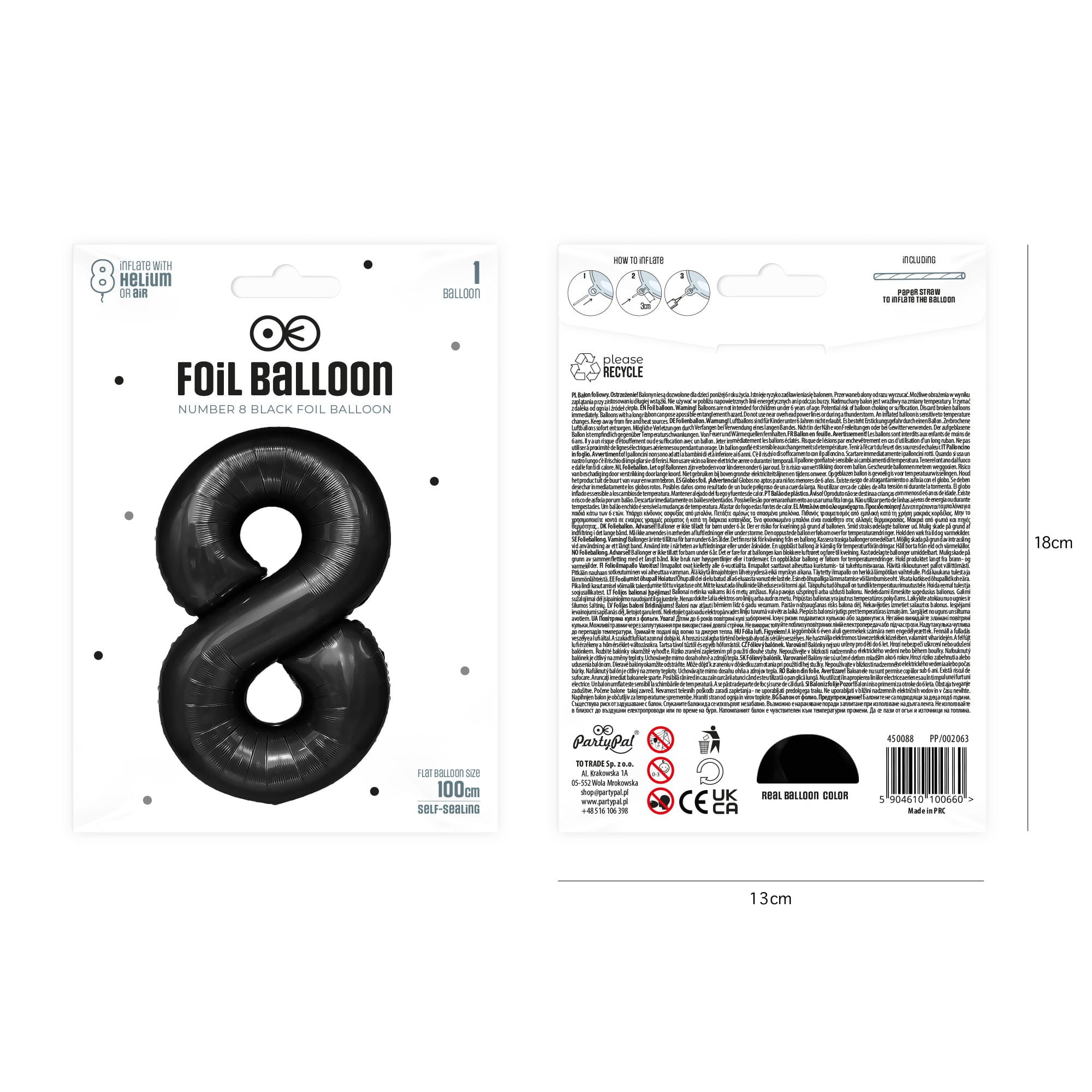 Balon foliowy cyfra 8 czarny 85 cm