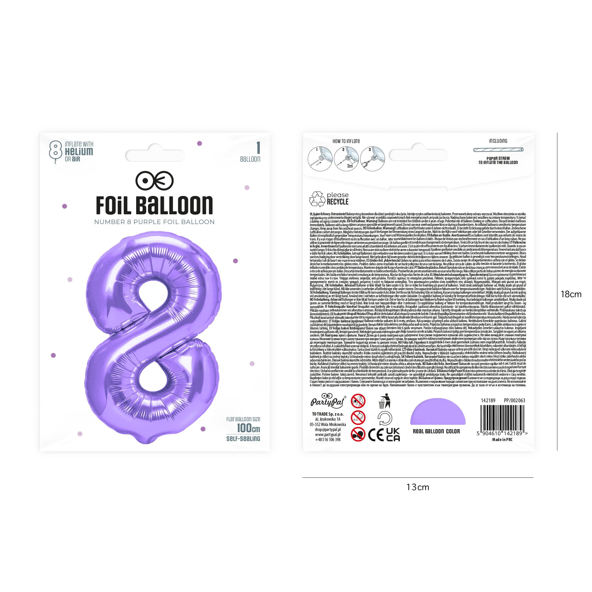 Balon foliowy cyfra 8 fioletowy 85 cm