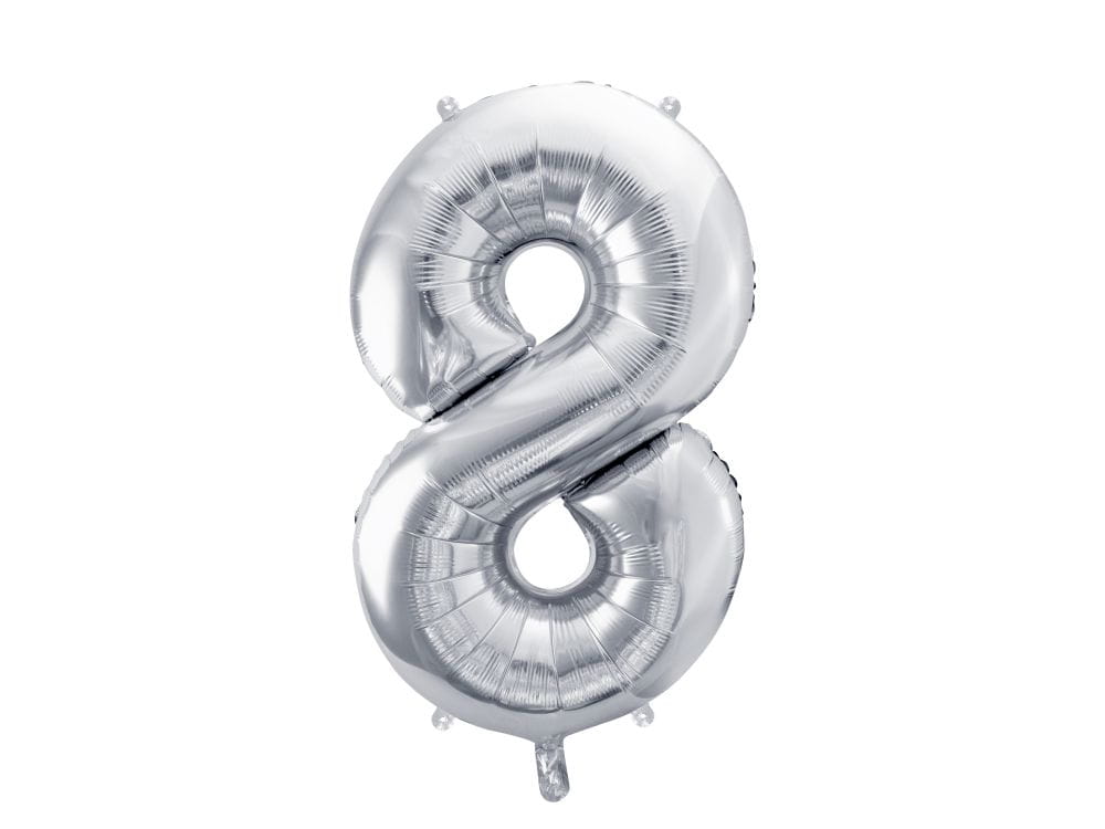 Balon foliowy cyfra 8 srebrny 70 cm