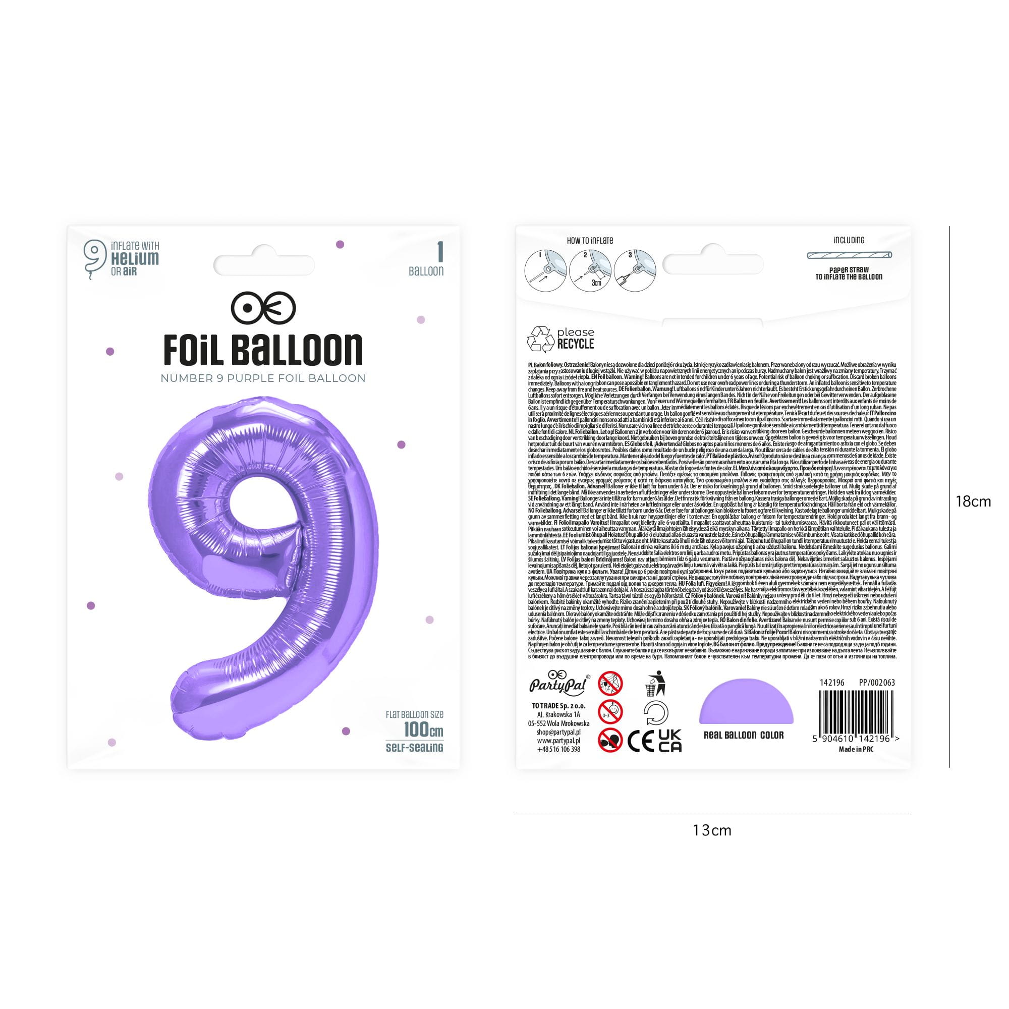 Balon foliowy cyfra 9 fioletowy 85 cm