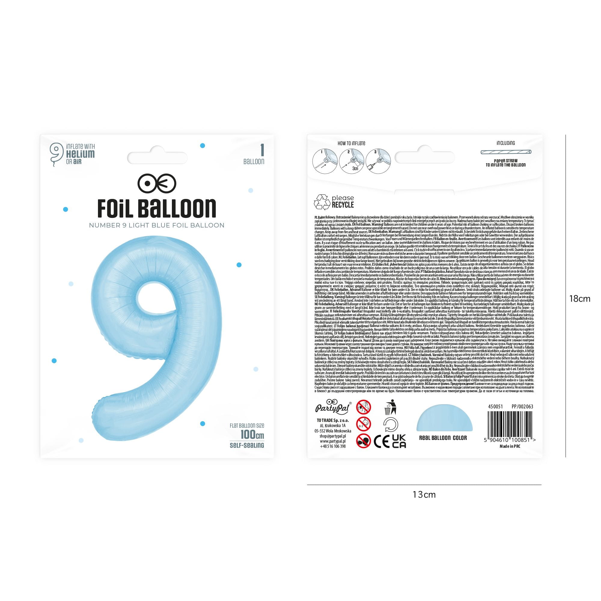 Balon foliowy cyfra 9 niebieski 85 cm