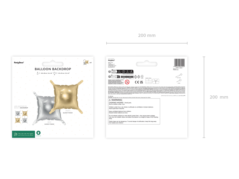 Balon foliowy kurtyna dwustronna Kwadrat złoto-srebrny 35 x 35 cm