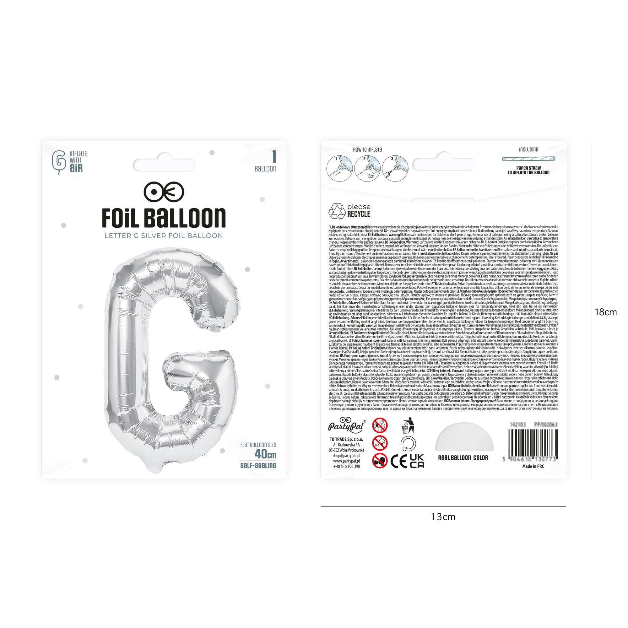 Balon foliowy litera G srebrny 40 cm