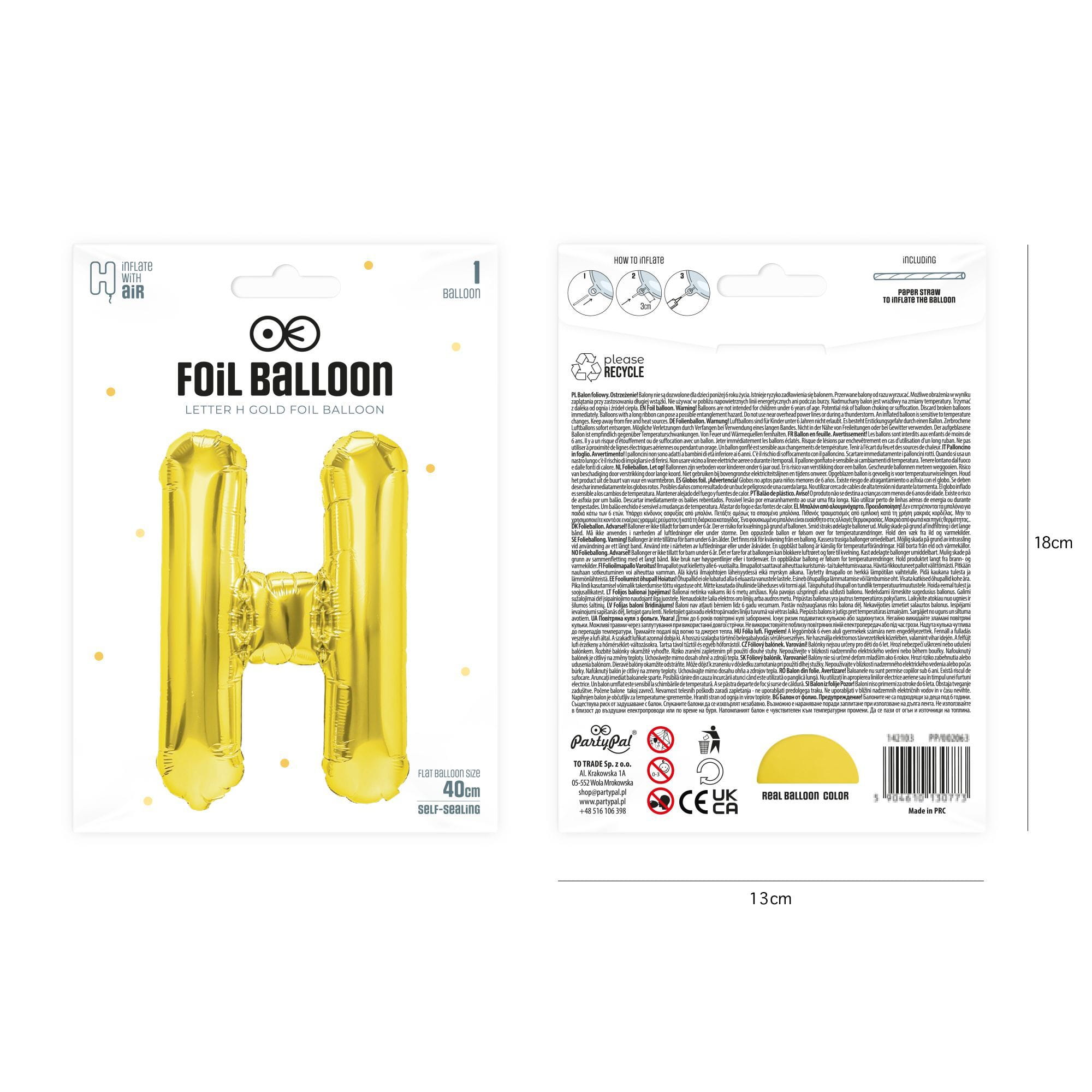 Balon foliowy litera H złoty 40 cm
