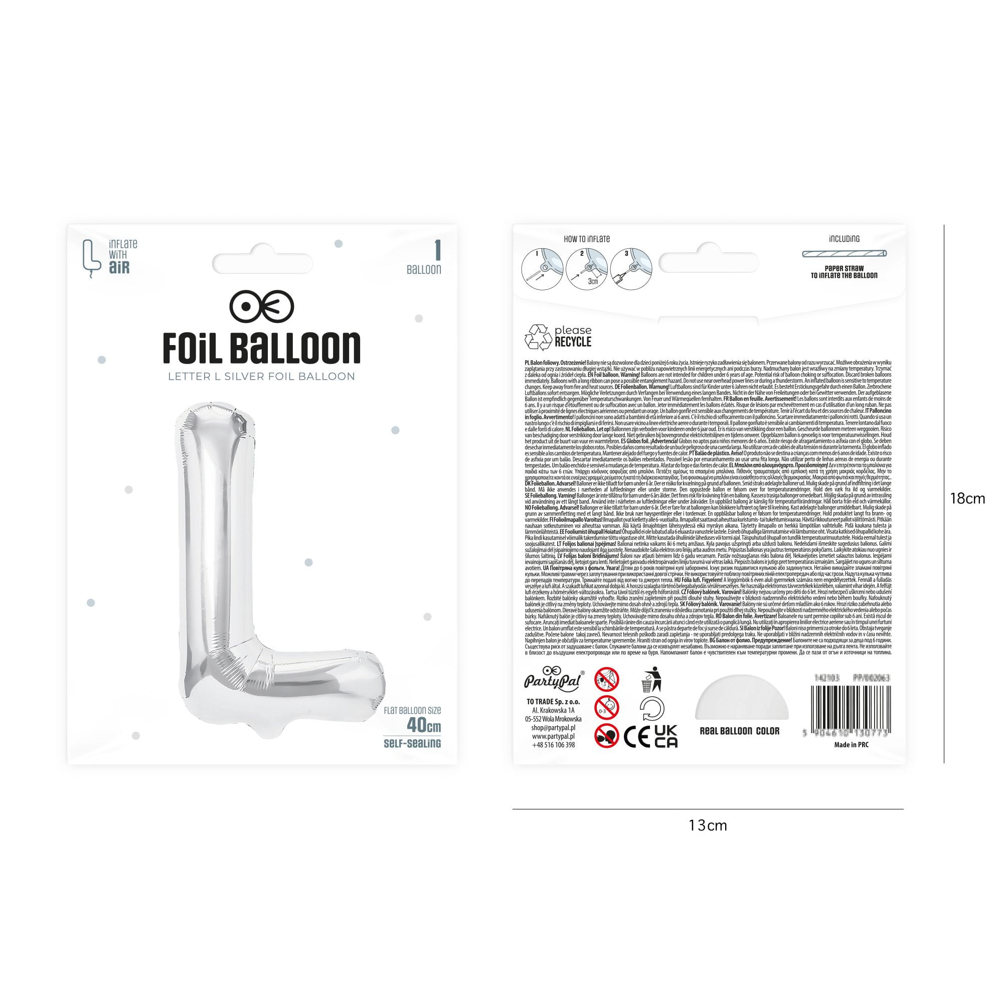 Balon foliowy litera L srebrny 40 cm