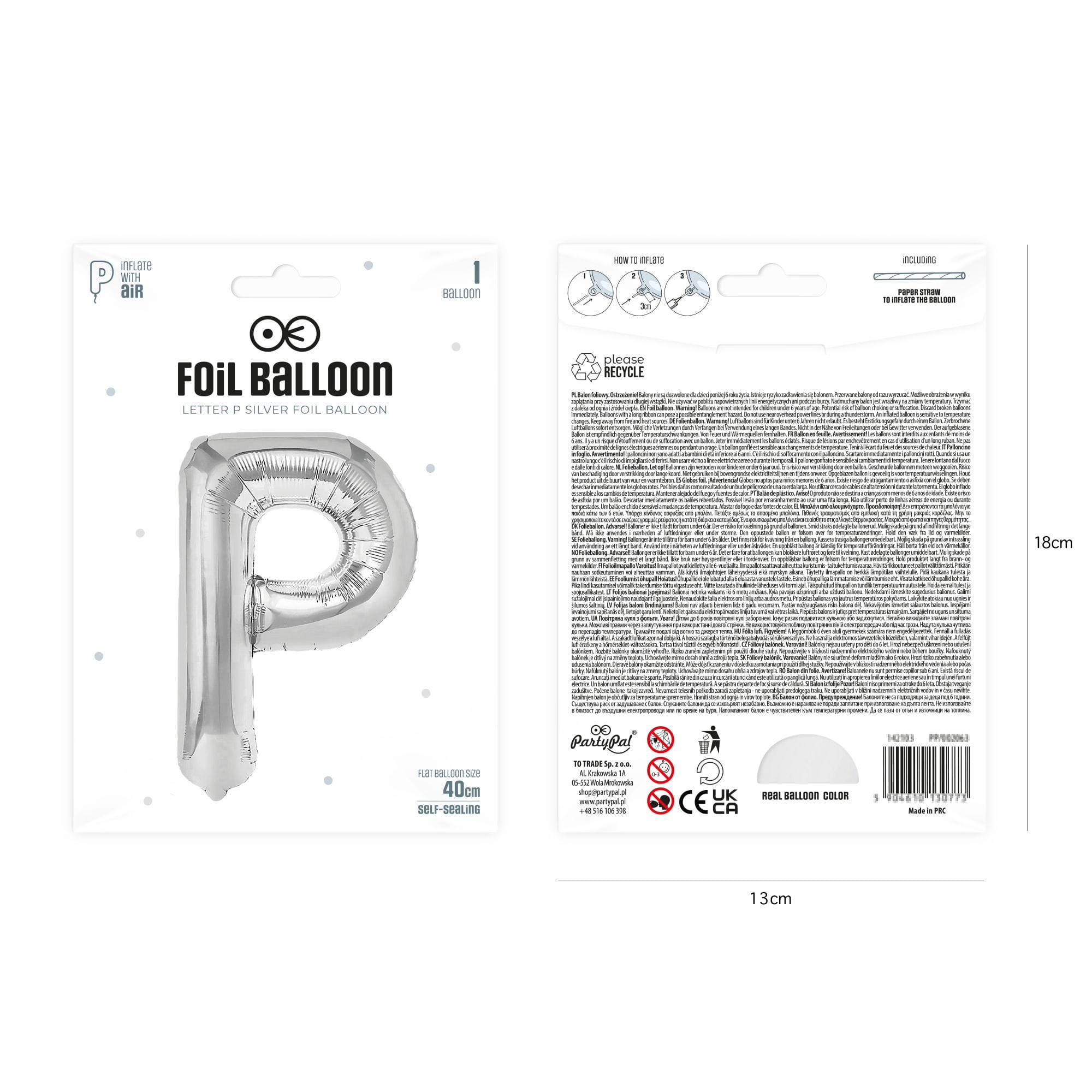 Balon foliowy litera P srebrny 40 cm