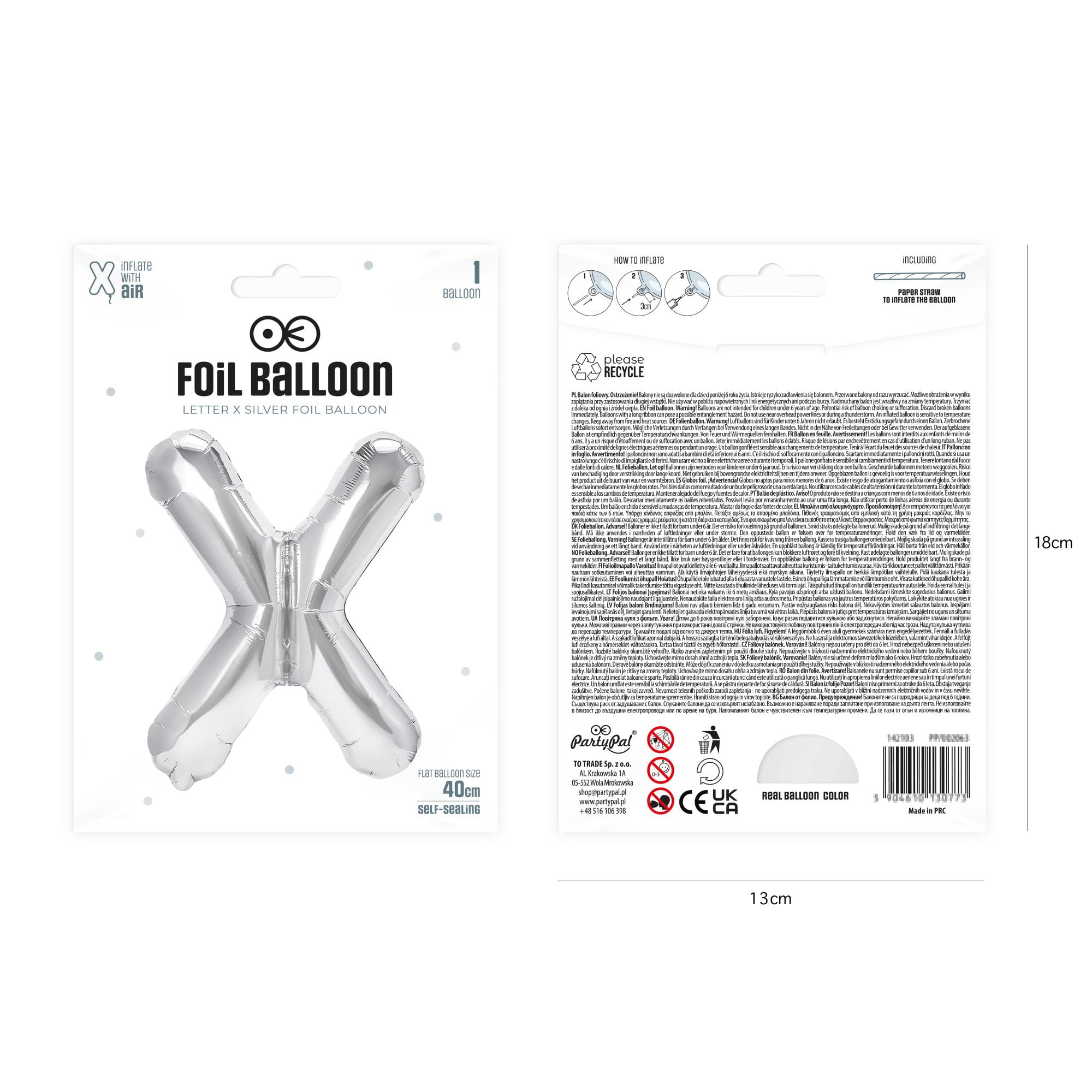 Balon foliowy litera X srebrny 40 cm