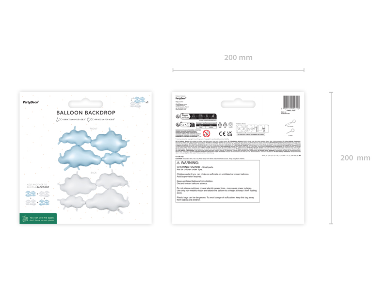 Balon foliowy tło dwustronne Chmurki biało-jasno niebieski 99 cm x 52 cm