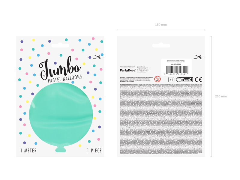 Balon okrągły jasna mięta pastelowy 100 cm PartyDeco