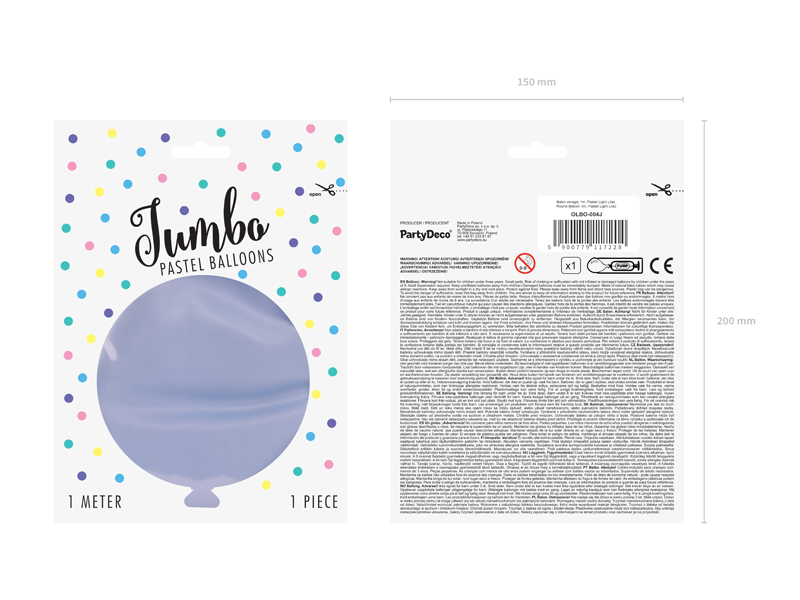 Balon okrągły jasny liliowy pastelowy 100 cm PartyDeco