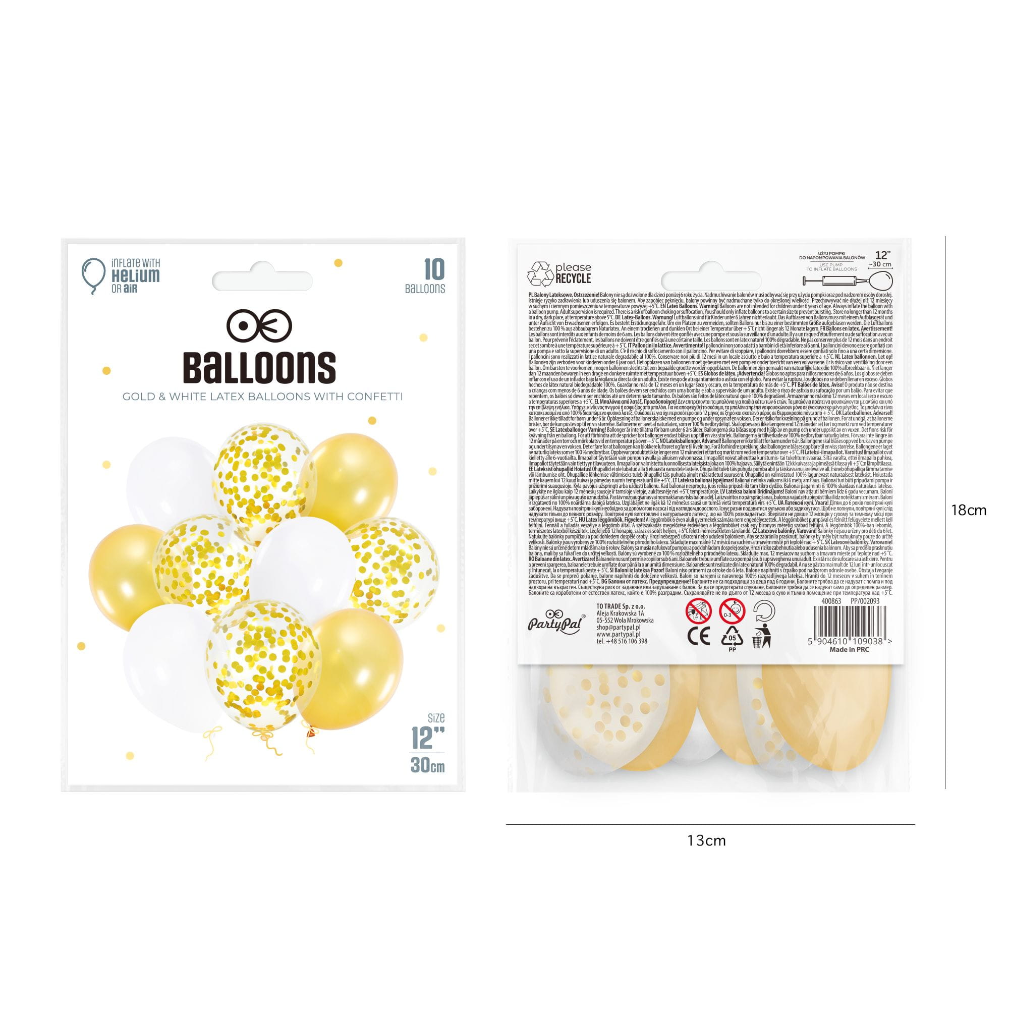 Balony 12 cali złote z konfetti 10 szt