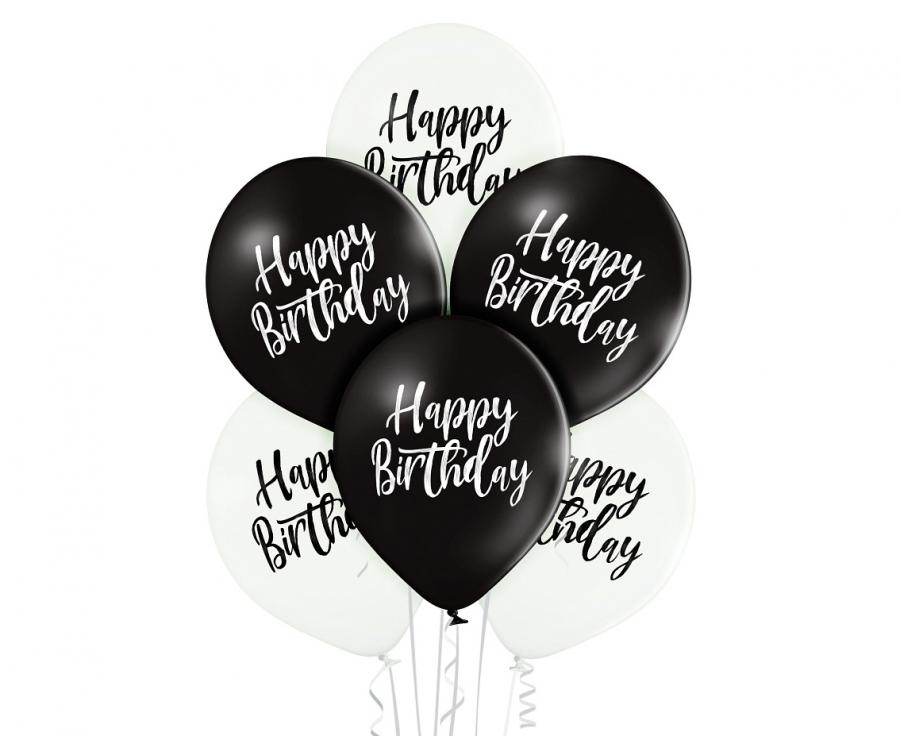 Balony Belbal 12 cali D11 "Happy Birthday" biało-czarne 6szt.