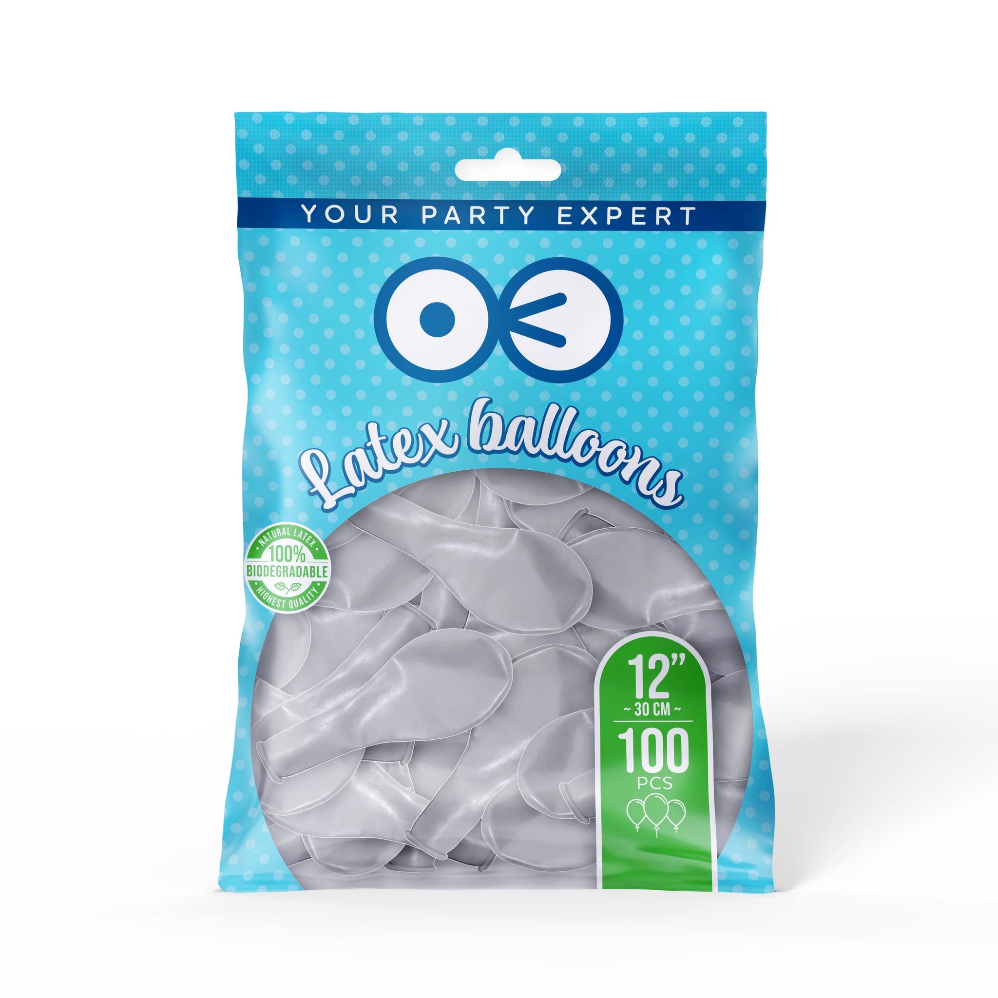 Balony Biodegradowalne chrom srebrne12 cali 100 szt PartyPal