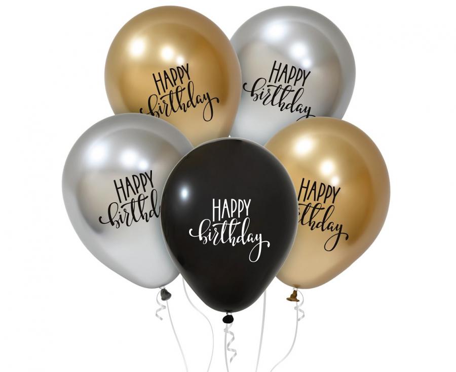 Balony Happy Birtday (platynowe kolory) 12 cali 5 szt