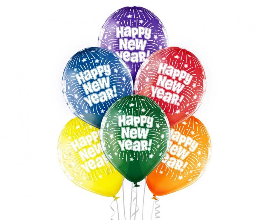 Balony Happy New Year 12 cali 6 szt