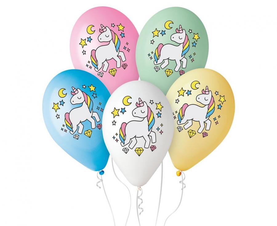 Balony Jednorożec - magiczna noc nad. kolorowy 12 cali 5 szt