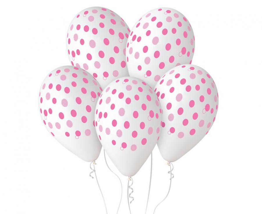 Balony Różowe Groszki 12 cali 5 szt