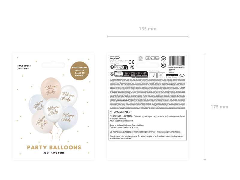 Balony Welcome Baby niebieski 30 cm 14 cali 6 szt