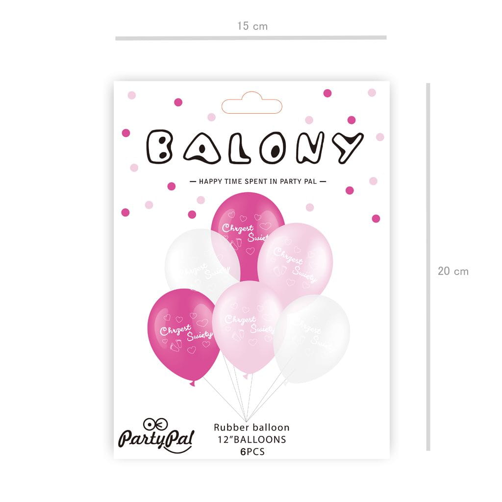 Balony na Chrzest Święty różowe 12 cali 6 szt