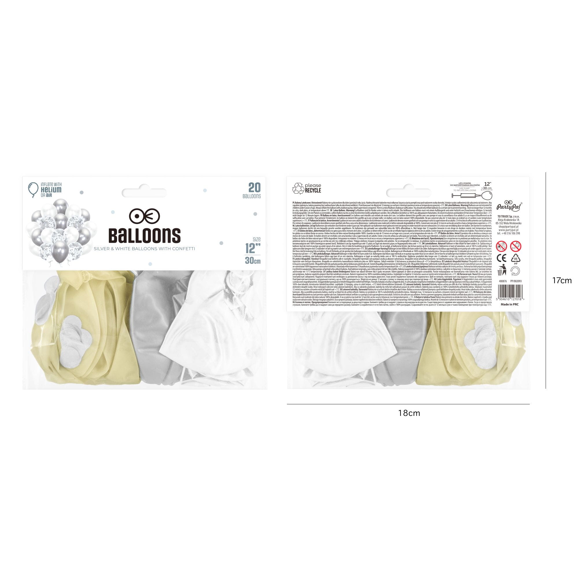 - Balony metaliczne białe - 8 szt.