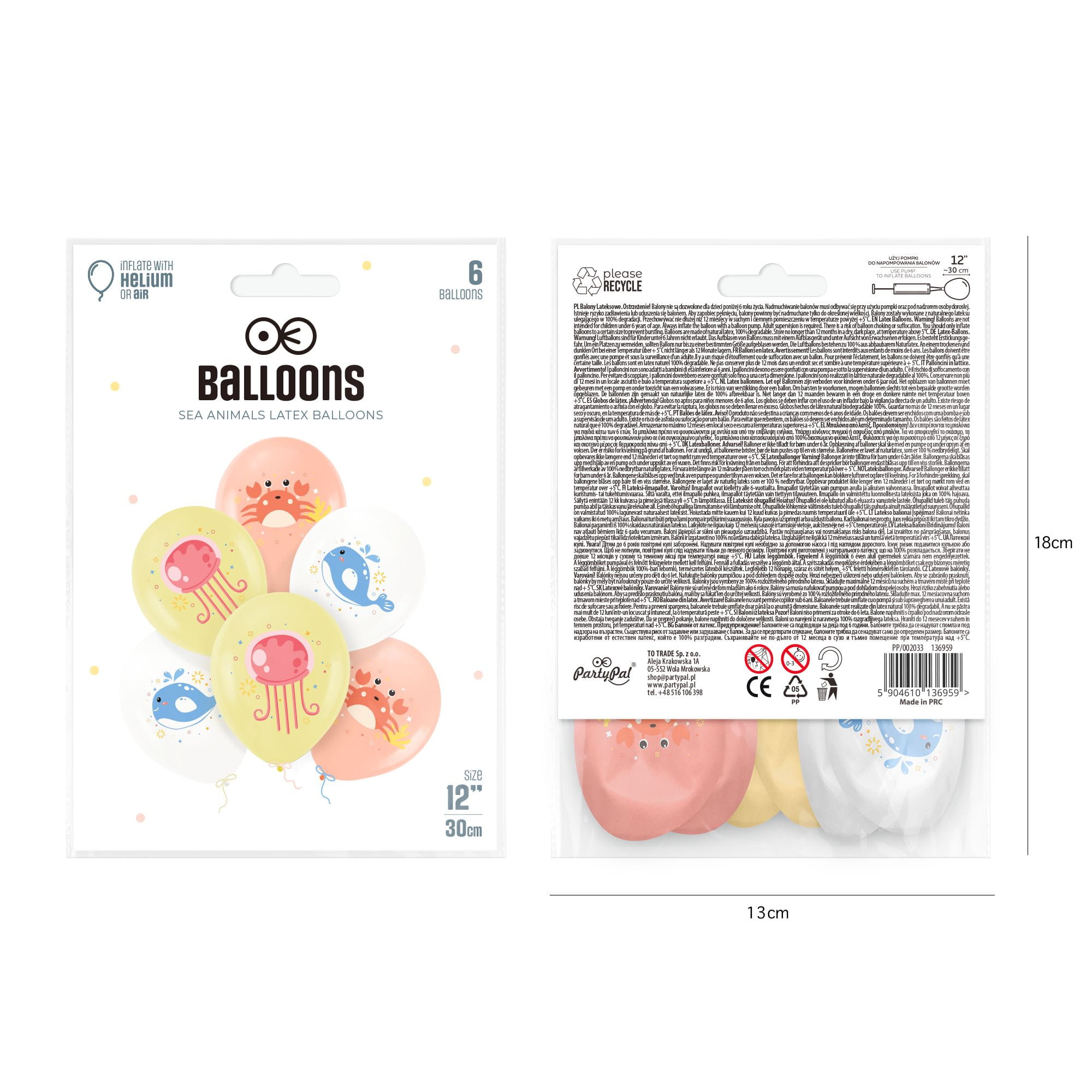 Balony urodzinowe Morskie Zwierzątka 27 cm 12 cali 6 szt