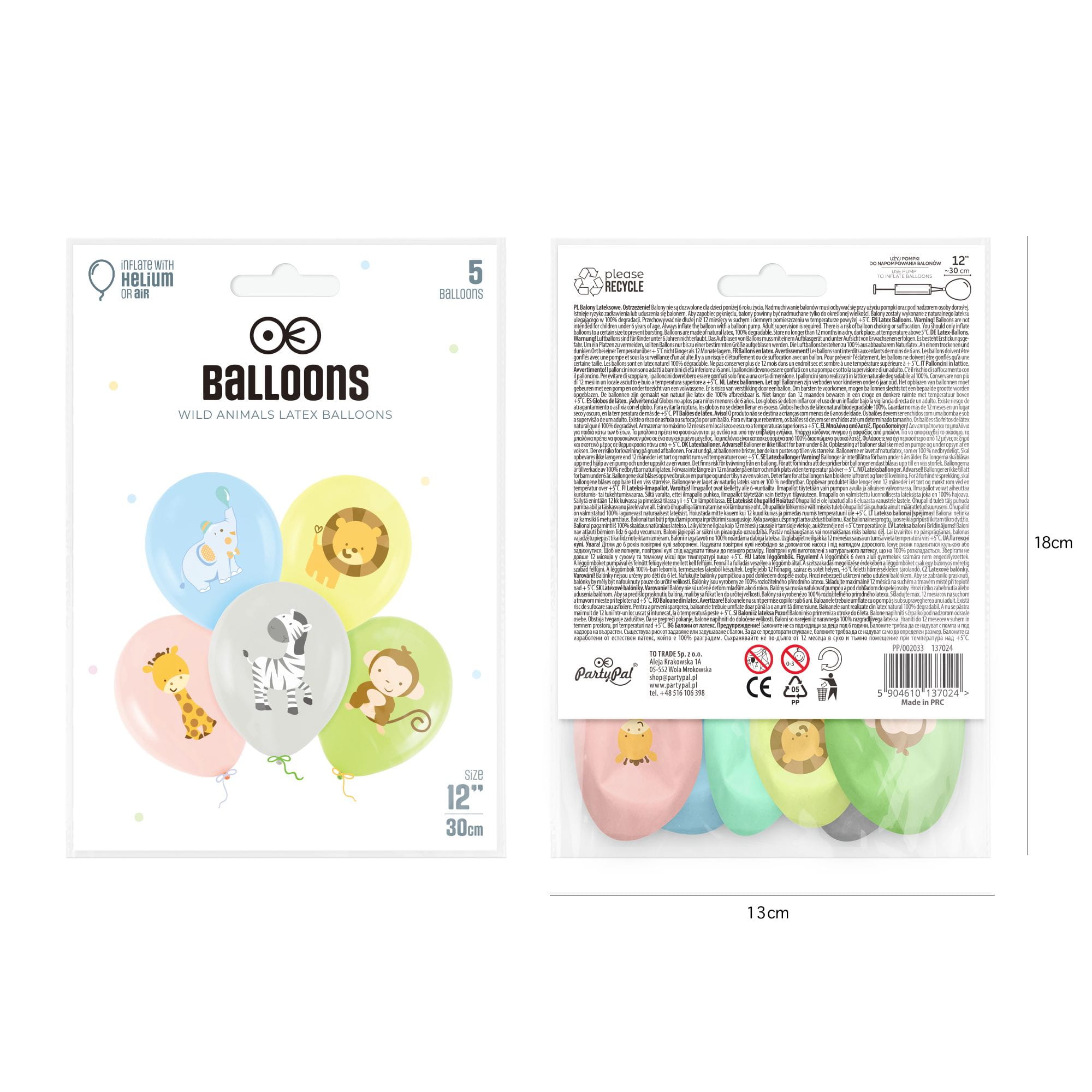 Balony urodzinowe Zwierzątka 27 cm 12 cali 5 szt
