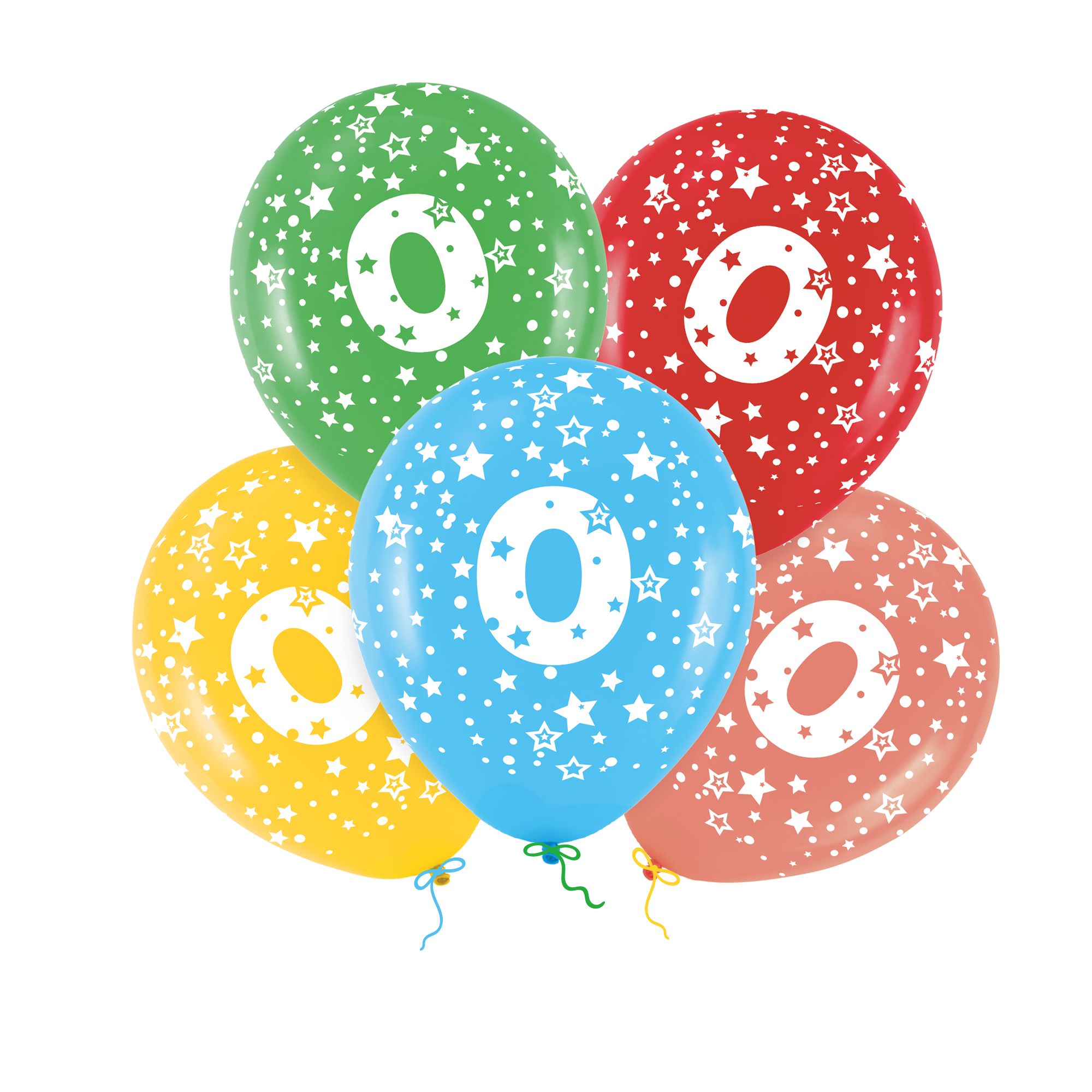 Balony z cyfrą 0 kolorowe 27 cm 12 cali 5 szt