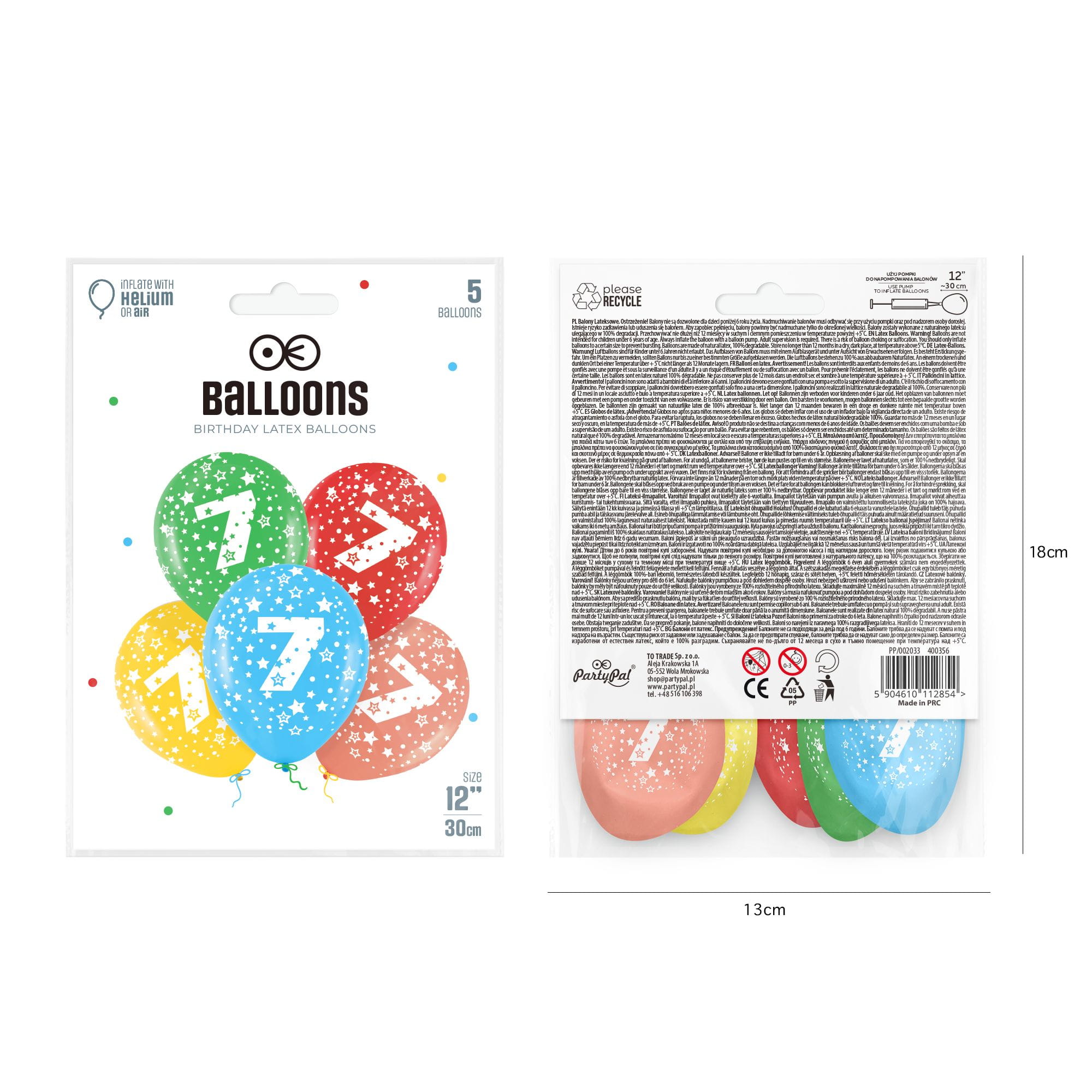 Balony z cyfrą 7 kolorowe 27 cm 12 cali 5 szt
