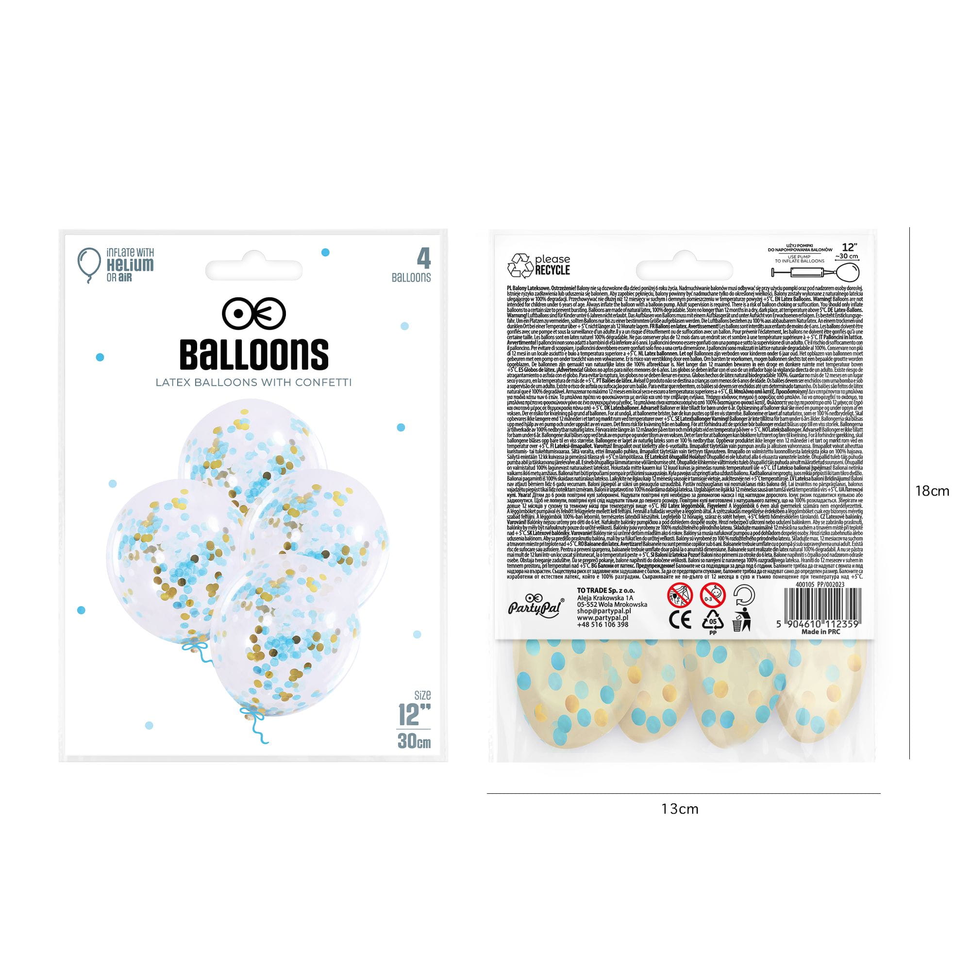 Balony z konfetti niebiesko-złotym 12 cali 4 szt