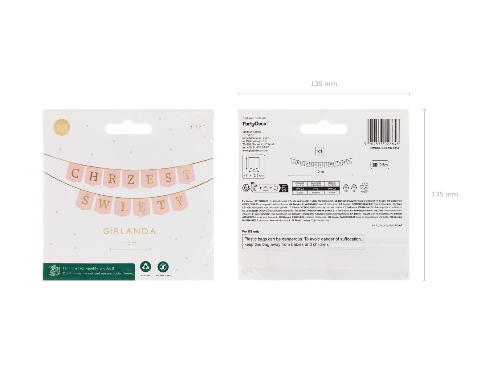 Baner Chrzest Święty jasnoróżowy 200 cm