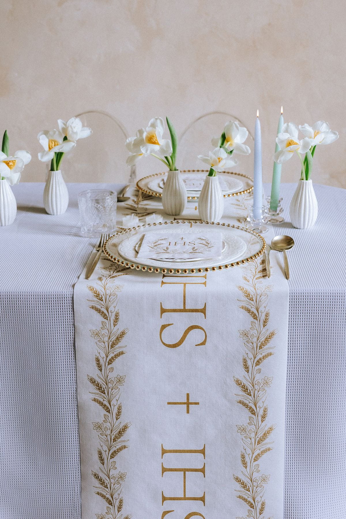Bieżnik fizelinowy na stół komunijny złoty 5 m