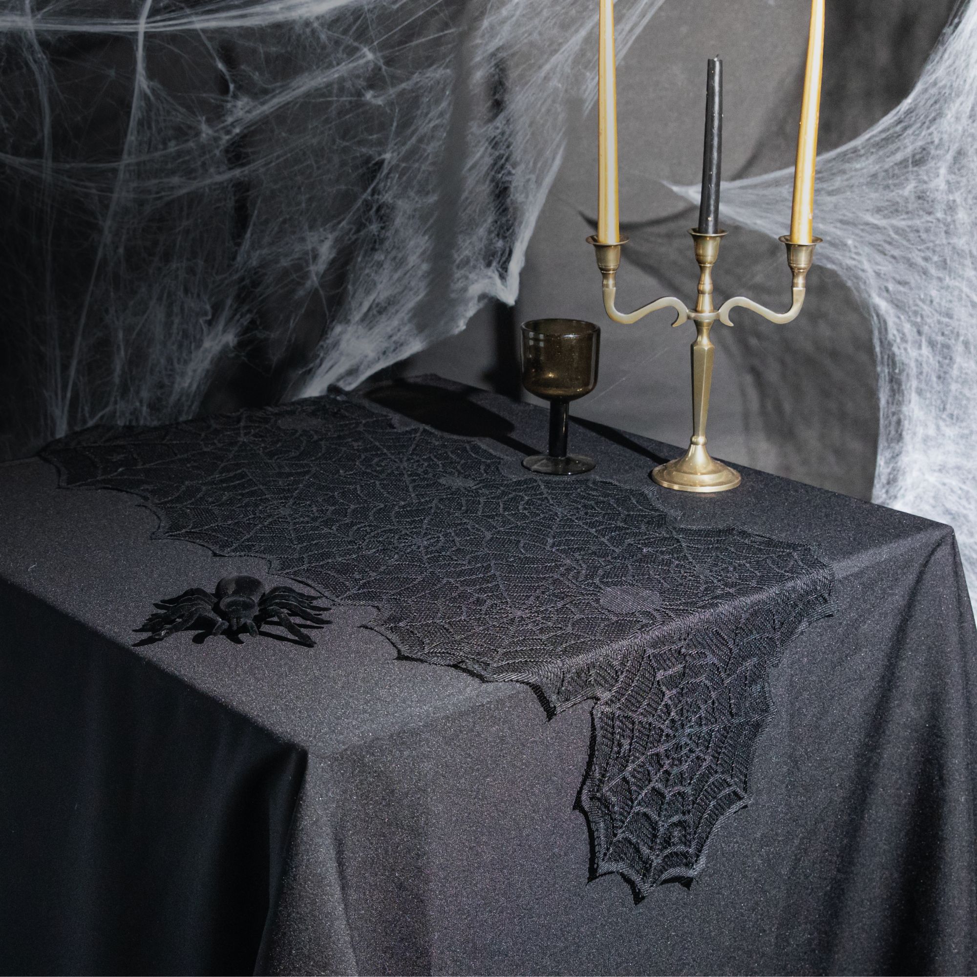 Bieżnik na stół koronkowy pajęczyny Halloween czarny 45 cm x 183 cm