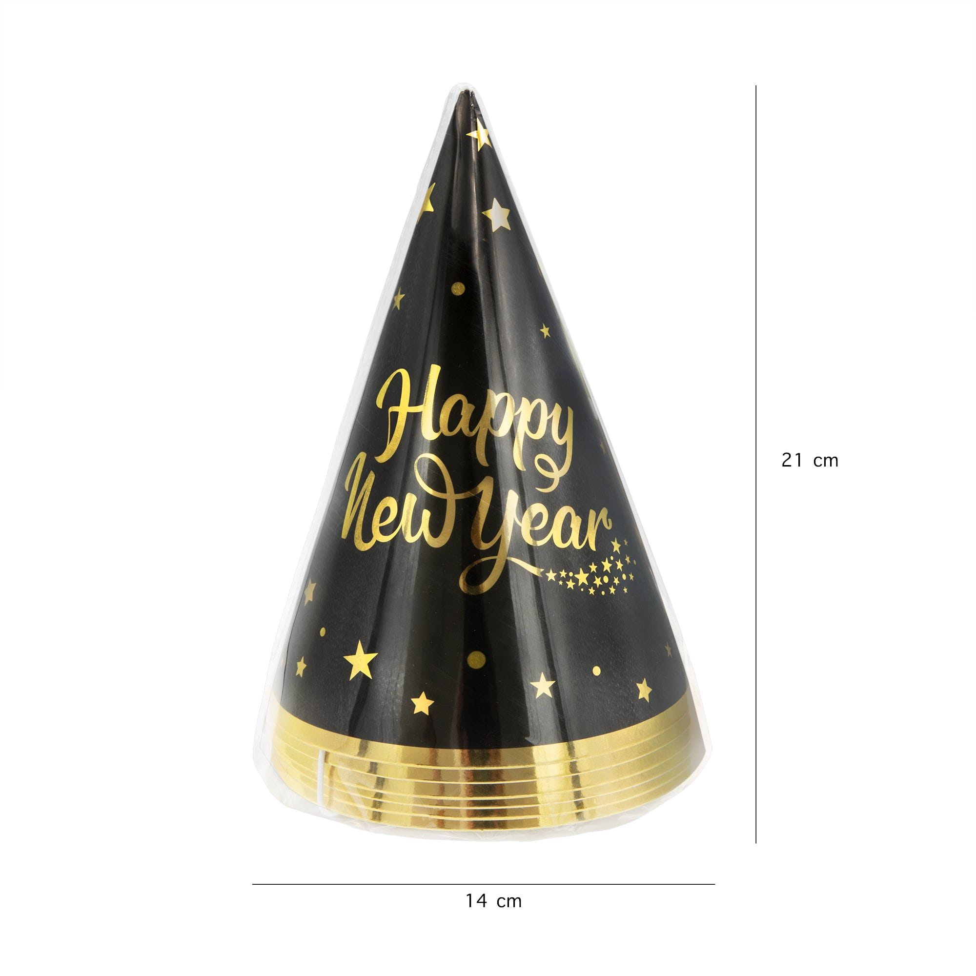 Czapeczki imprezowe Happy New Year czarno-złote 6 szt
