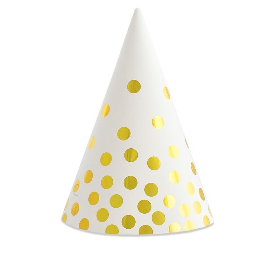Czapeczki papierowe Złote groszki białe 6 szt